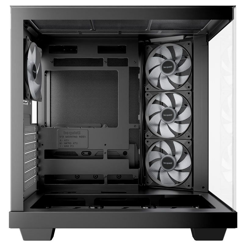 Za tiste, ki cenijo subtilno osvetlitev brez kompromisov pri zmogljivosti, Light Base 500 LX Black doda pridih prefinjenosti osrednji zasnovi zahvaljujoč priloženim ventilatorjem Light Wings LX. V vhodno/izhodno ploščo je integriran gumb za upravljanje ARGB z vnaprej določenimi svetlobnimi učinki in barvami. Predhodno nameščen zadnji ventilator in stranski ventilatorji, ki so povezani v verigo, so priključeni na 6-smerno vozlišče ARGB in PWM, tako da ostanejo 4 prosti priključki za dodatne naprave.