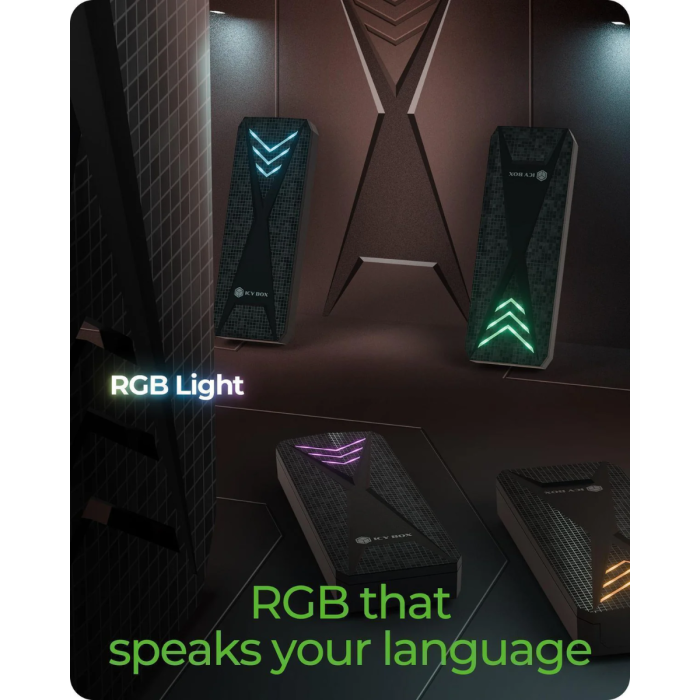 Vgrajena RGB osvetlitev jasno prikazuje stanje napajanja in aktivnosti ter doda vizualni element delovnemu okolju.