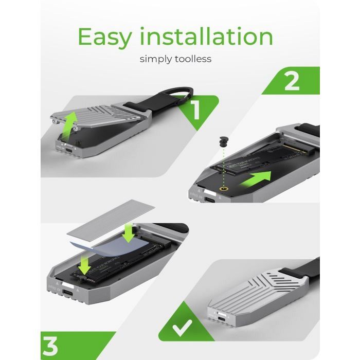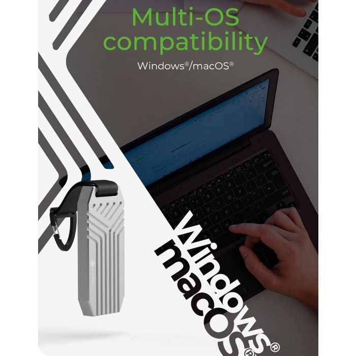RegistracijaOhišje IB‑1919M‑C42 omogoča priklop M.2 2280 NVMe SSD‑jev in maksimalno izkoriščanje hitrosti USB4 vmesnika z do 40 Gbit/s prenosa. Aluminijasto ohišje skrbi za učinkovito odvajanje toplote in robustnost. Montaža je možna brez orodja (tool‑less), kar pomeni hitro in preprosto zamenjavo diska. Združljivo je z USB‑C priklopom in deluje na Windows, macOS in Linux sistemih. Primeren je za profesionalne uporabnike, izvajalce ter uporabo za urejanje videa ali hitre odzive pri velikih podatkovnih nizih.