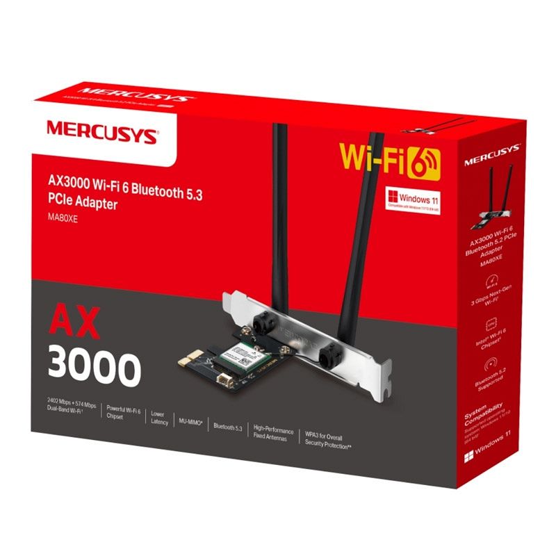 RegistracijaMERCUSYS MA80XE AX3000 WiFi 6 Bluetooth 5.3 Dual Band PCIe mrežna kartica