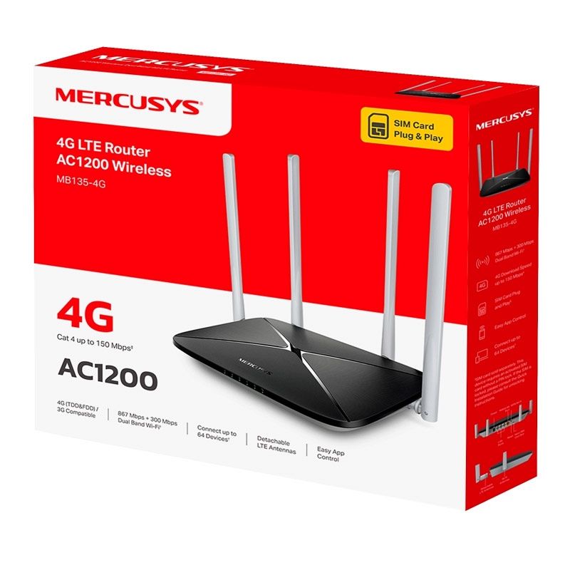 MERCUSYS MB135-4G AC1200 Dual Band 4G LTE SIM brezžični usmerjevalnik-router