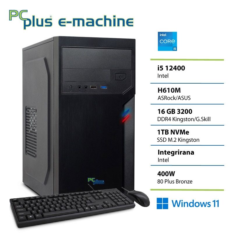 RegistracijaPCplus e-office i5-12400 16GB 1TB NVMe SSD Windows 11 Home tipkovnica miška namizni računalnik