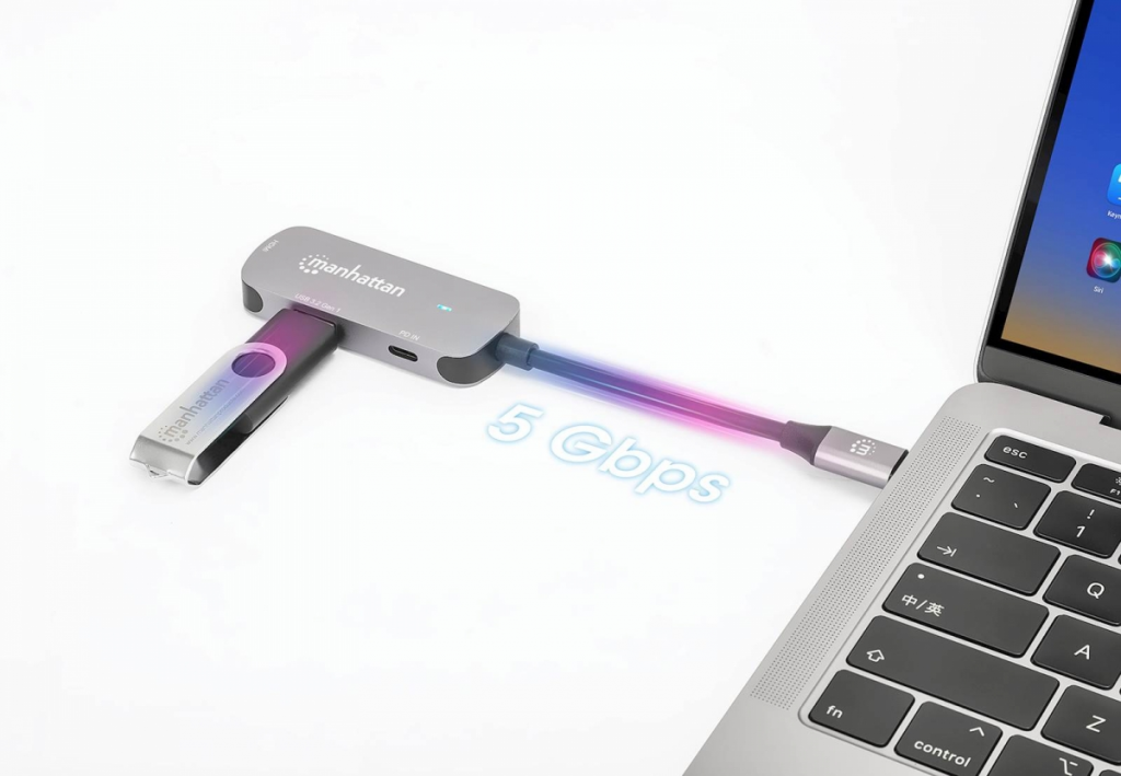 USB 3.2 tipa C moški na HDMI (4K@30Hz), USB-A (5Gbps) & USB-C PD (100W) ženski, prehodno polnjenje