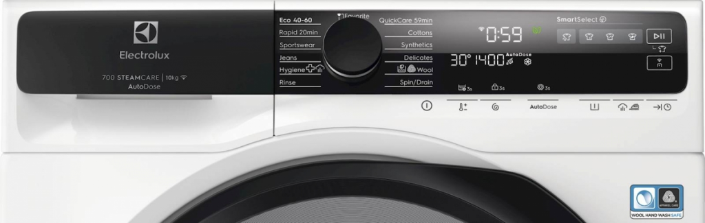 25-minutni program SteamRefresh je primeren za delikatna oblačila in uporabi manj vode od običajnega pranja. Za bolj svež občutek lahko dodate tudi Electrolux Steam Fragrance. (*Na podlagi notranjega testa porabe vode pri SteamRefresh pri polnem pranju 30 °C programa za delikatna oblačila z 1 kg količino perila.) QuickCare 59min je hiter in učinkovit pralni program, ki pri 30 °C opere mešano bombažno in sintetično perilo. AutoDose doda natančno dozo pralnega sredstva in mehčalca k perilu. Pomaga preprečiti ročno predoziranje in zmanjša uporabo pralnega sredstva do 60 %.* (* Na podlagi notranjega testa glede uporabljene količine pralnega sredstva pri 2-kg količini perila z AutoDose v primerjavi s povprečno ročno dozo glede na test notranje plošče.)