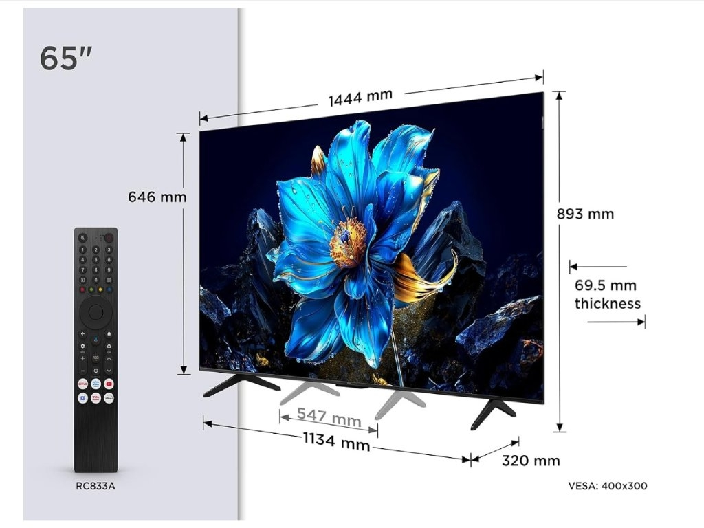 TCL 65P7K je 4K HDR televizor, zasnovan za živahne barve, širok barvni spekter in izboljšan kontrast, ki ga omogočata tehnologiji Wide Color Gamut in Dolby Vision. LED panel z naprednimi slikovnimi algoritmi AiPQ Engine zagotavlja natančno reprodukcijo barv in jasno sliko v vseh vsebinah. Zaslon s 60Hz in Motion Clarity poskrbi za gladko prikazovanje hitrih prizorov pri filmih, športu in igrah. Dolby Atmos pa dopolni izkušnjo z bogatim prostorskim zvokom. Televizor poganja Google TV, ki omogoča enostaven dostop do aplikacij, glasovno upravljanje in vgrajen Chromecast. S podporo HDMI 2.1 (ALLM, eARC) je pripravljen za sodobne igralne konzole in domači kino sistem.