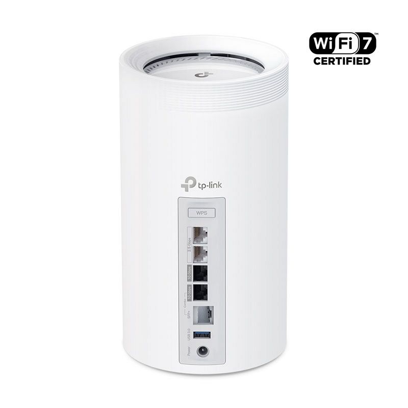 Opremljen z dvema 10 Gbps WAN/LAN vhodoma - enim RJ45 vhodom in kombiniranim RJ45/SFP+ vhodom - Deco BE85 zagotavlja prilagodljivo podporo za optične in bakrene povezave. Dodatna 2,5 Gbps vhoda in vhod USB 3.0 ga naredijo idealno rešitev za pripravo vašega domačega omrežja na prihodnost.