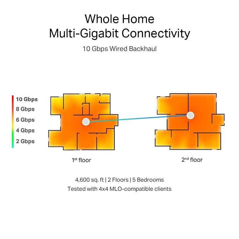 Deco BE85 v prvem nadstropju ostaja enak kot pri žičnem omrežnem prenosu. Zaradi sten in stropa med nadstropjema pa središče drugih Deco BE85 prejme približno 3,5 Gbps , medtem ko hitrost preostalega dela hiše doseže 3-3,5 Gbps
