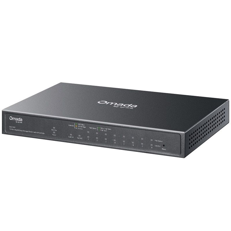 TP-Link Omada ES210GP je zanesljivo in tiho gigabitno stikalo, zasnovano za nadzorne sisteme, manjša podjetja in vse, ki potrebujejo stabilno PoE+ napajanje ter centralizirano upravljanje v oblaku. Opremljeno je z devetimi gigabitnimi RJ45 priključki, od katerih jih osem podpira PoE+ (802.3af/at), ter s kombiniranim SFP/RJ45 gigabitnim portom, ki omogoča prilagodljivo povezljivost. Skupni PoE budget znaša 63 W, posamezen port pa lahko zagotovi do 30 W moči, kar je idealno za IP kamere, dostopne točke in druge PoE naprave.