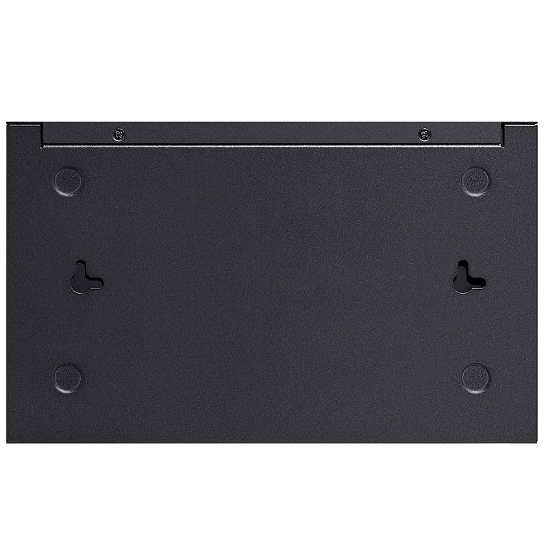 Ohišje iz trpežne kovine omogoča namestitev na mizo ali steno, brezventilatorska zasnova pa zagotavlja popolnoma neslišno delovanje. To stikalo je zato odlična izbira za pisarne, recepcije, manjše poslovne prostore in nadzorne sobe, kjer je tišina pomembna.